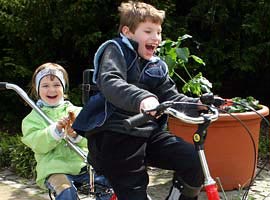 Inzwischen trete ich richtig in die Pedale, sodass mein Alter ganz schön ins Schwitzen gerät. Er gerät dann immer in Panik, wenn ich auf die Büsche zuhalte.